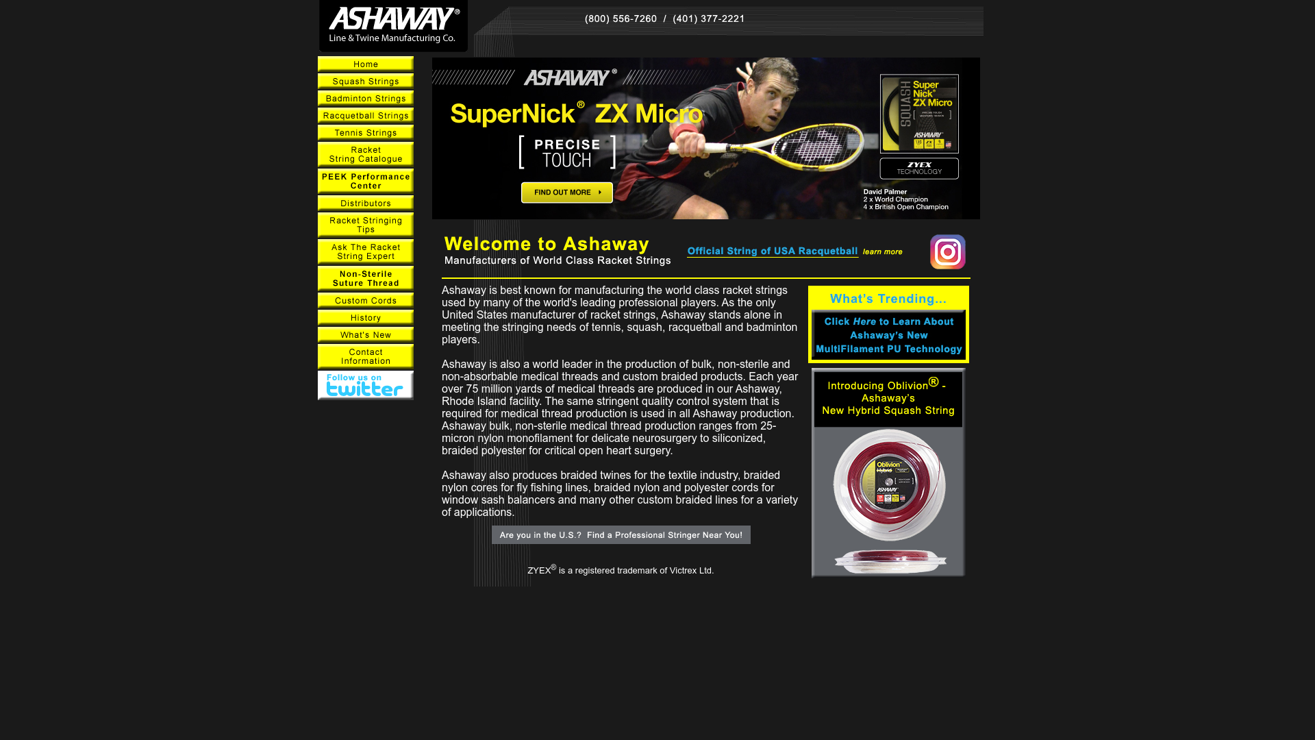 The main products of Ashaway include tennis, squash, and badminton strings, as well as fishing lines.